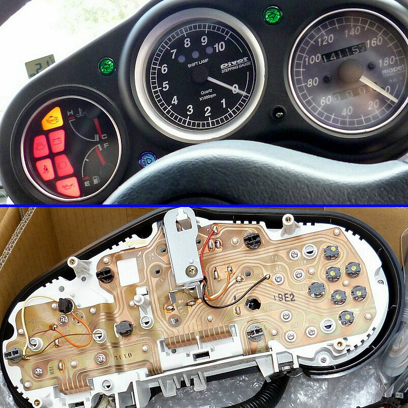 左端はエンジン警告灯のLEDですが、パネル内にあるカラーフィルターが