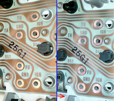 奥側の短い端子(金属棒) 4本が、オド&トリップメーター駆動用