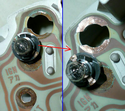 周囲が腐食していて、メーターを再固定すると接触不良が