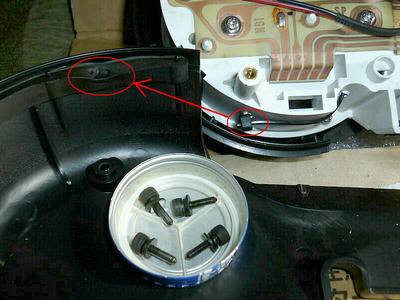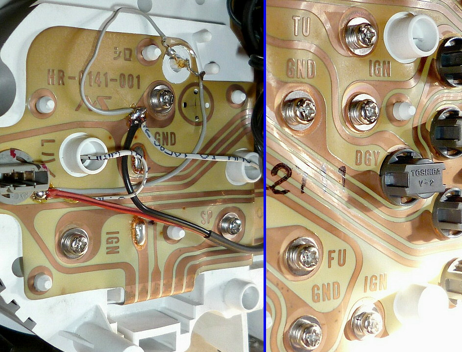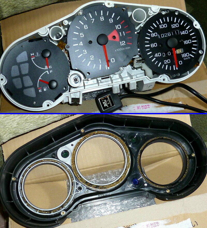 合わせ面にあるスポンジに、追加LED(機械式トリップメーターのバックライト用)を