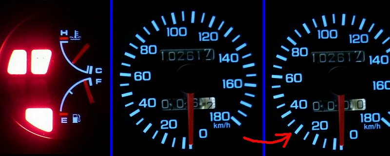 画像左側は、純正のオド&トリップメーターを直接照らすために