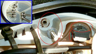 そばにある、バックライト用電球の端子も錆びが発生しています。