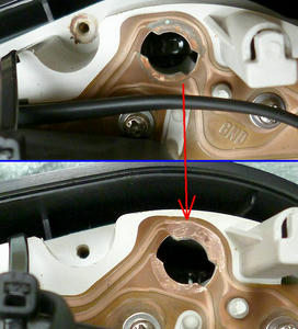 話がそれますが、タコメーター上部のバックライト電球取り付け部です。