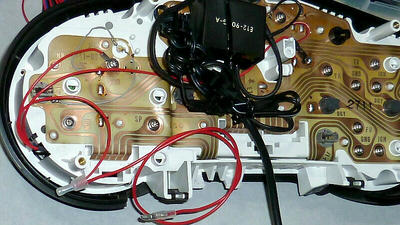 加工した速度計に、LCD・制御基板・リセットスイッチを組み込みました。