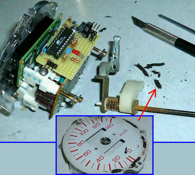 メーターのベース部分を切削して、LCDを埋め込むスペースを作ります。