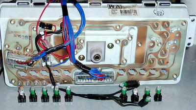左端はエンジン警告灯のLEDですが、パネル内にあるカラーフィルターが