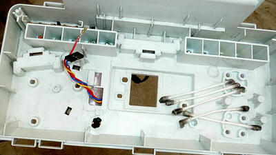 そしてLCDの固定方法ですが、基本、ワイヤーで上方向に引っ張り上げています。