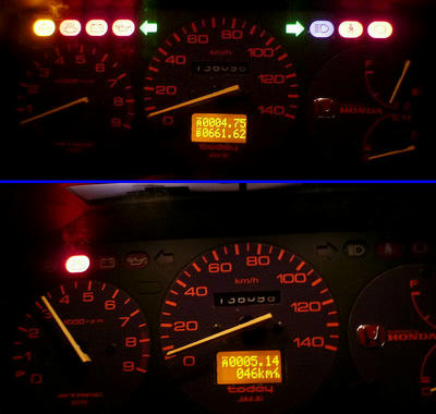 不要になったエンジン警告灯の電球をそちらへ流用しました。