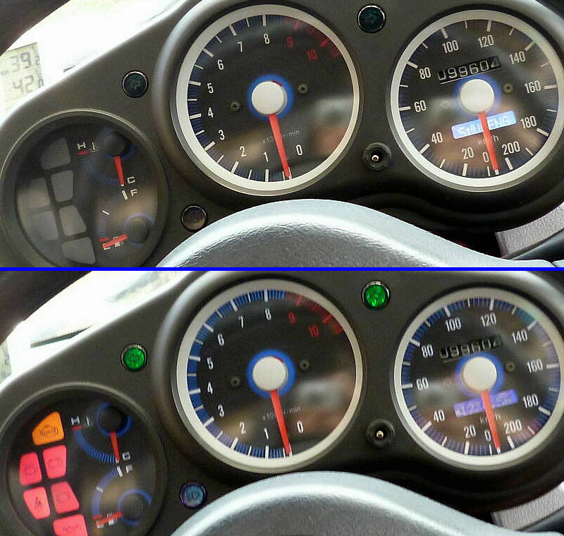 画像上側は、タコメーター背面 2ヶ所をLED化。