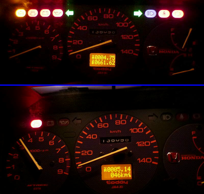 画像上側は、タコメーター背面 2ヶ所をLED化。