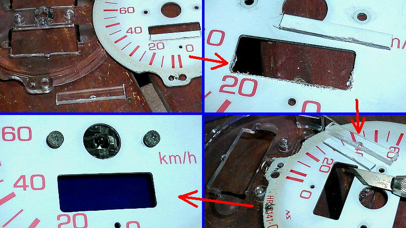 画像下側は、タコメーター背面 2ヶ所 & 水温・残量計背面 1ヶ所をLED化しています。