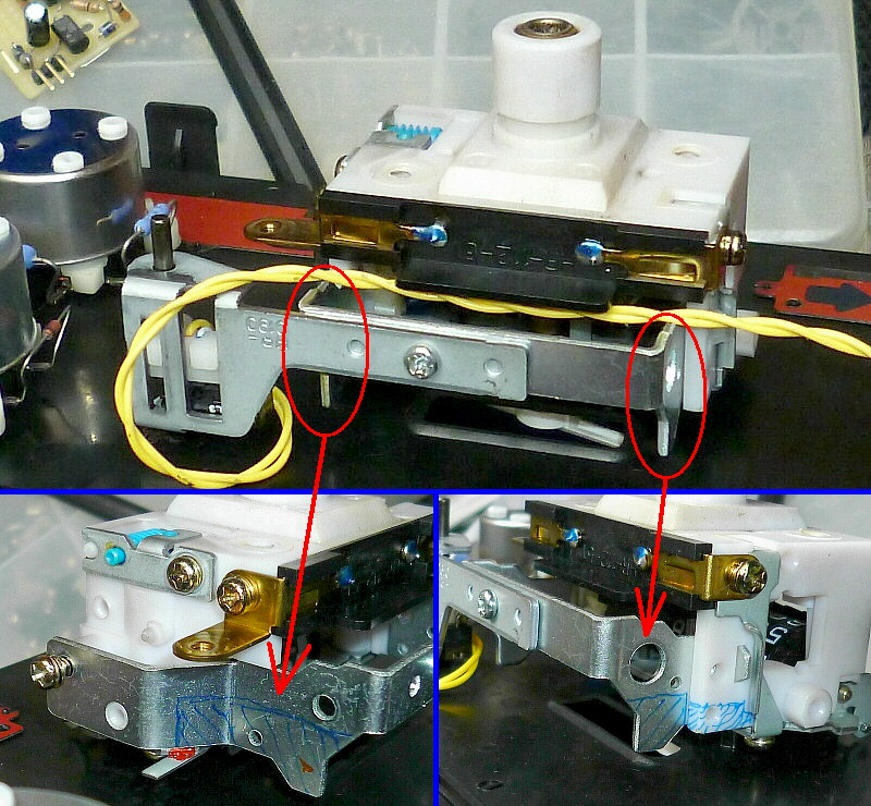 まずは、リセット機構にマイクロスイッチを取り付けます。
