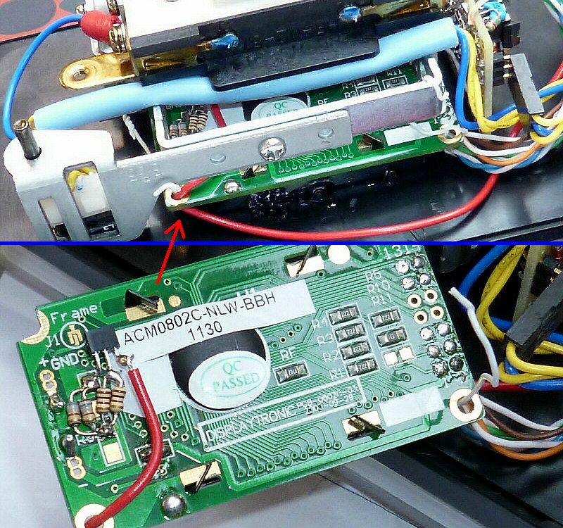 そしてLCDの固定方法ですが、基本、ワイヤーで上方向に引っ張り上げています。