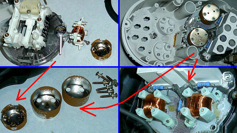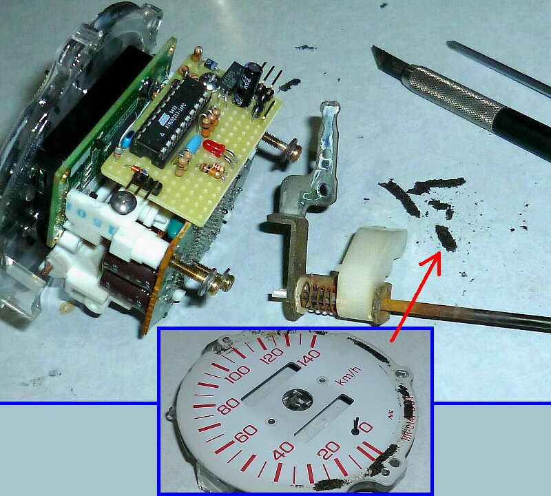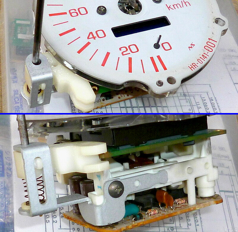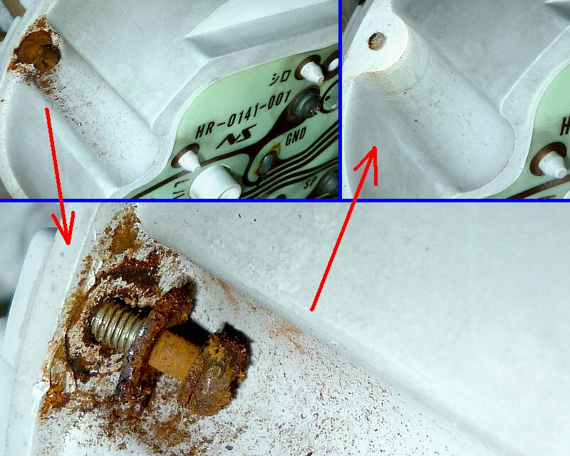 速度計背面のコイルカバー(缶)にも、若干の錆。