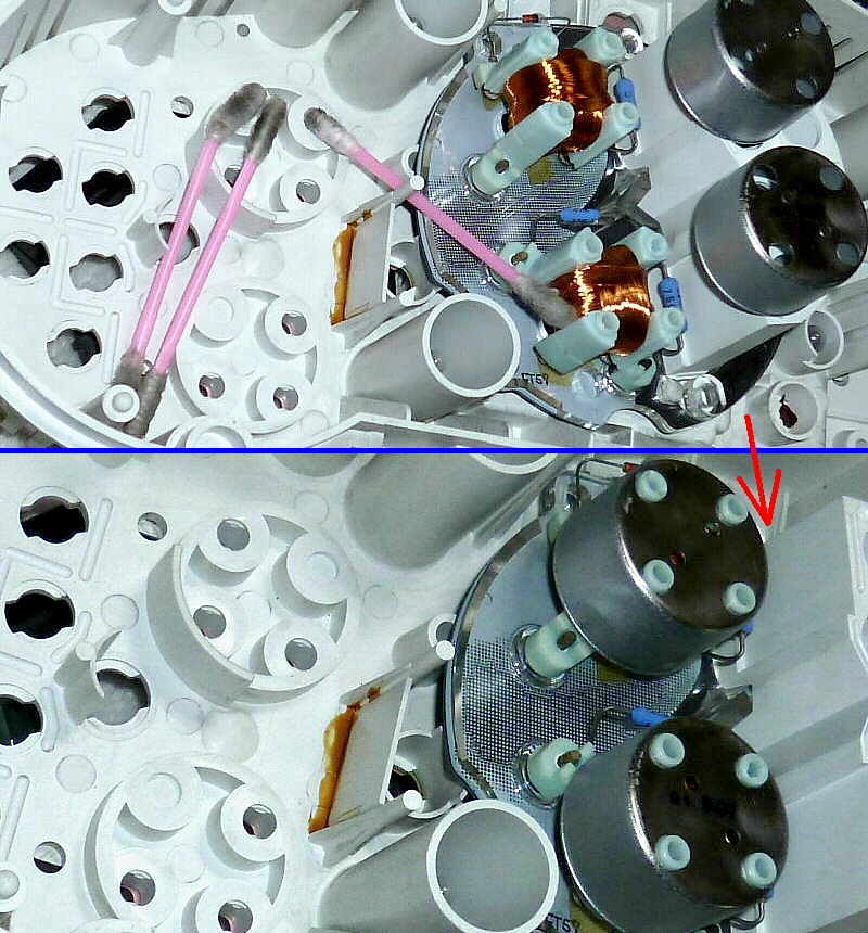接触不良が発生していますので、端子磨きと端子用防錆油の塗布。