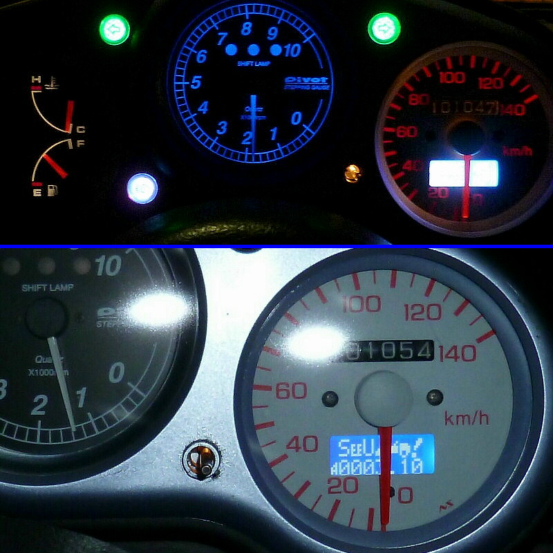 純正の電球が入っていて(但しタコメーターはpivot製のため、タコ用の電球 2個はありません)