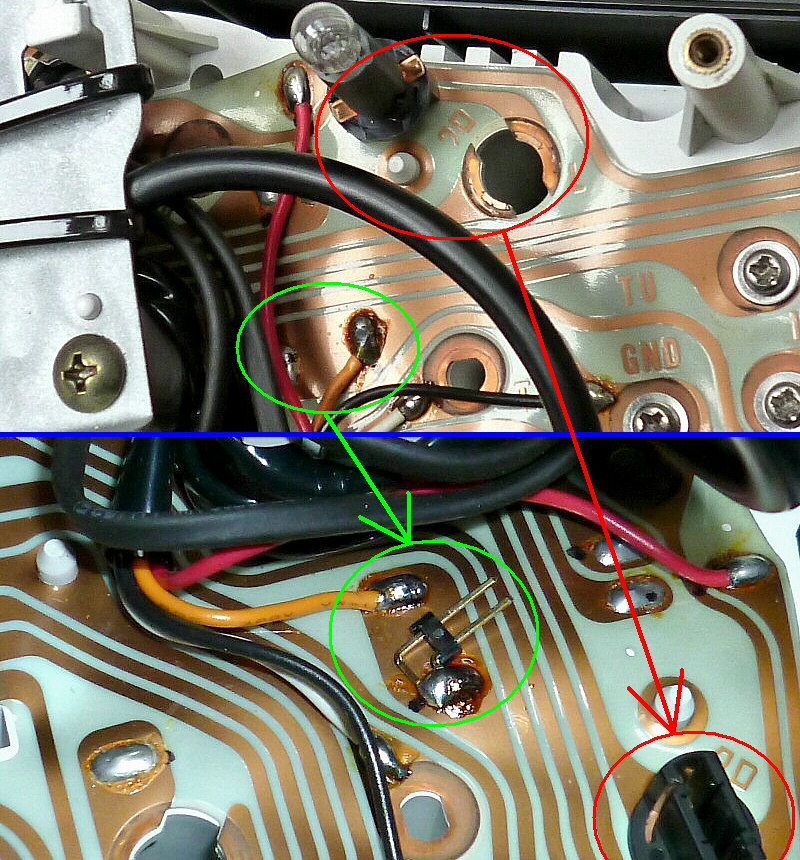 そして、「メーターケース背面のフレキシブル基板 & 電球ソケット」 の端子が酸化して、