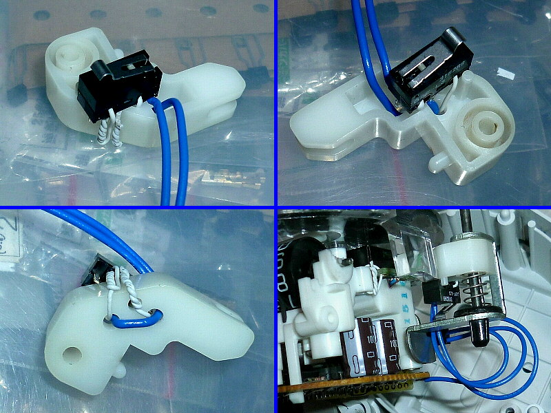 トリップリセット機構に、制御用のマイクロスイッチも取り付けて接続しました。