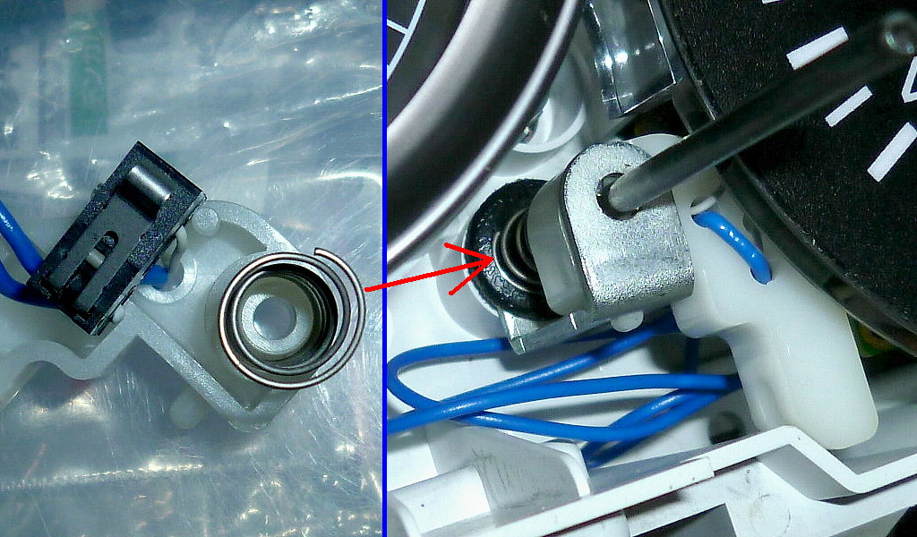 リセット機構部にある、ステンレス製に交換されているスプリング。