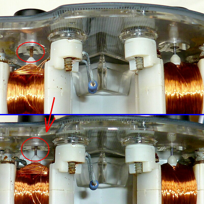 トリップリセット機構(エポキシ接着剤で補修済み)に