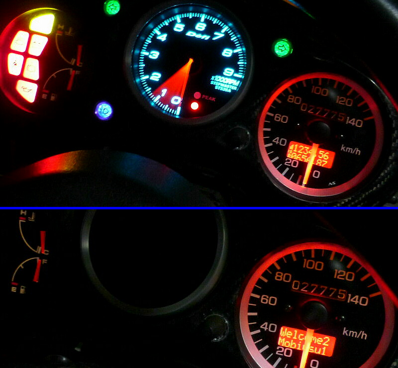 画像下側は、速度計の指針が発光している状態です。(イルミON)