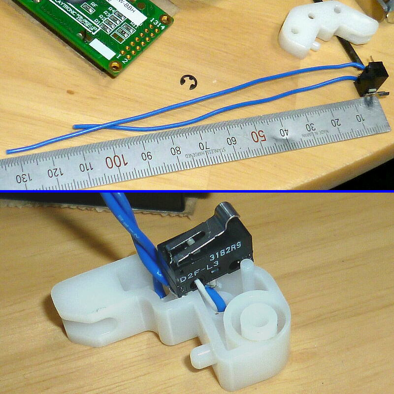 トリップ リセット用の部品に、マイクロスイッチを取り付けます。