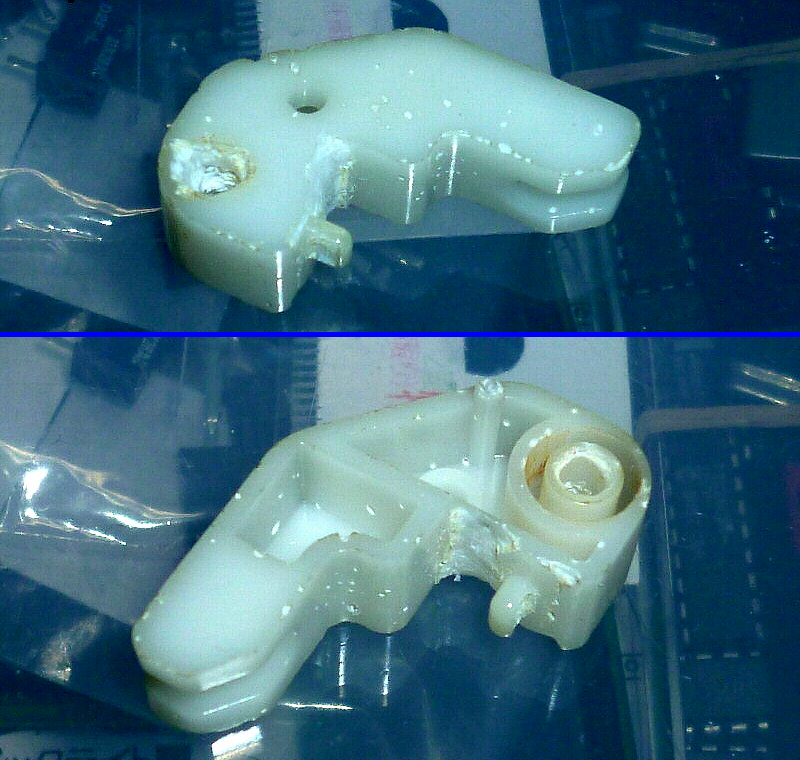 トリップリセット機構(エポキシ接着剤で補修済み)に