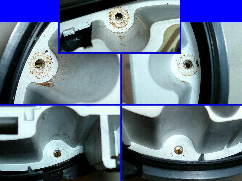 周囲が腐食していて、メーターを再固定すると接触不良が