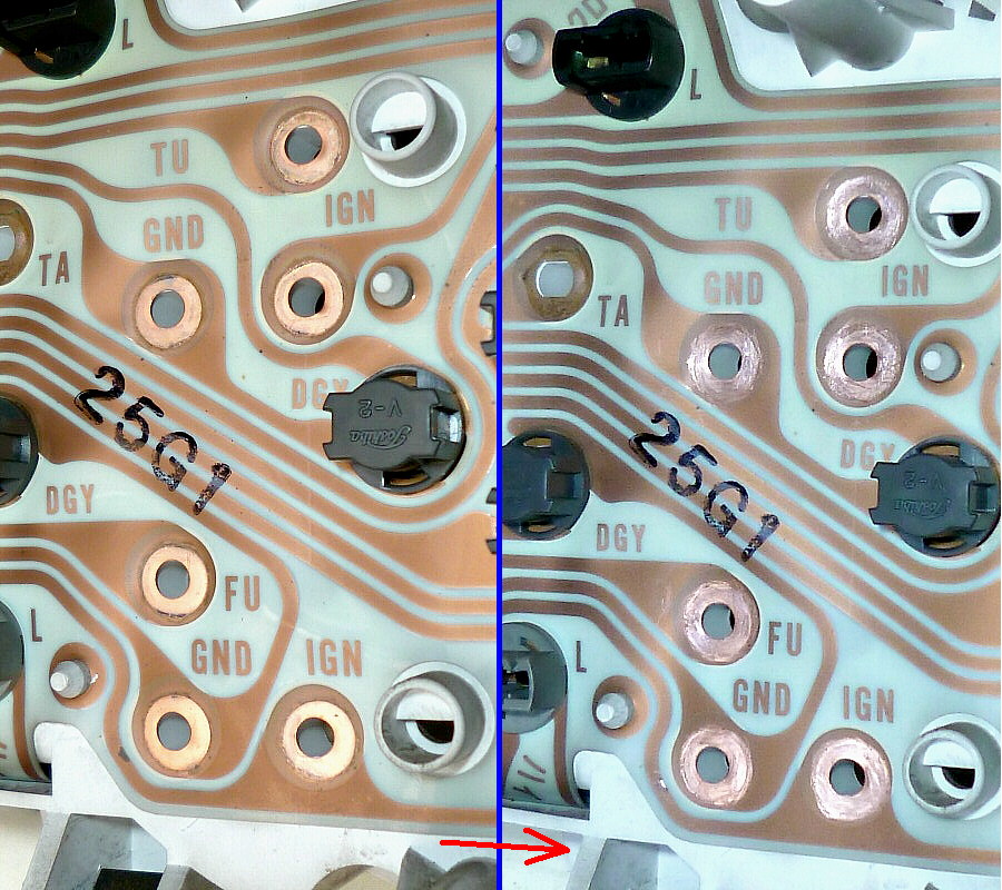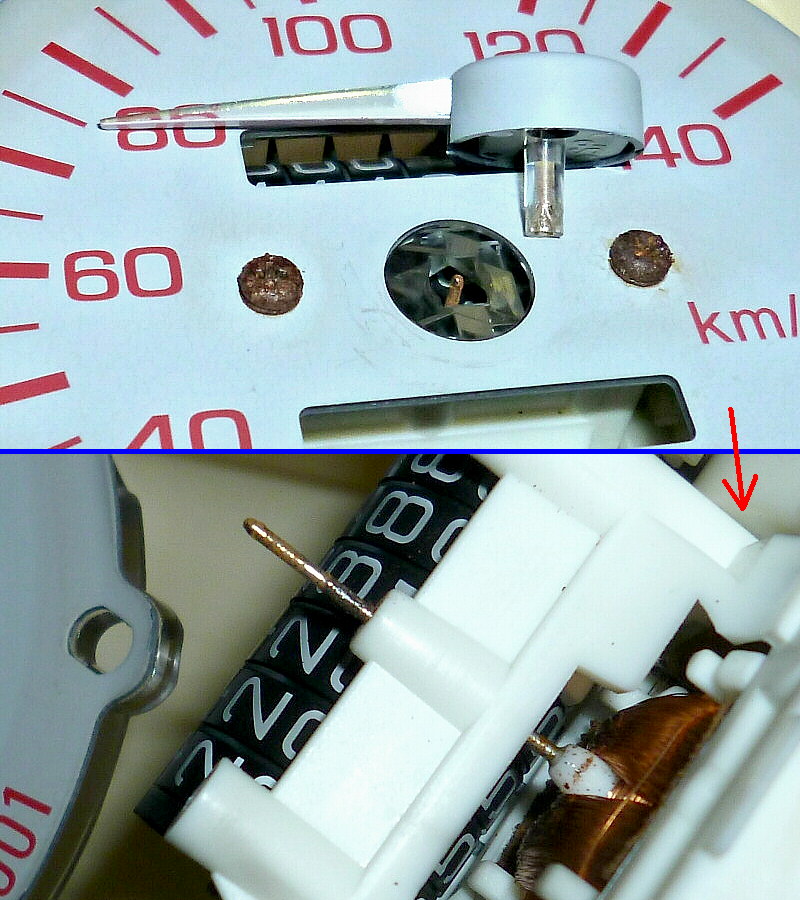 奥側の短い端子(金属棒) 4本が、オド&トリップメーター駆動用