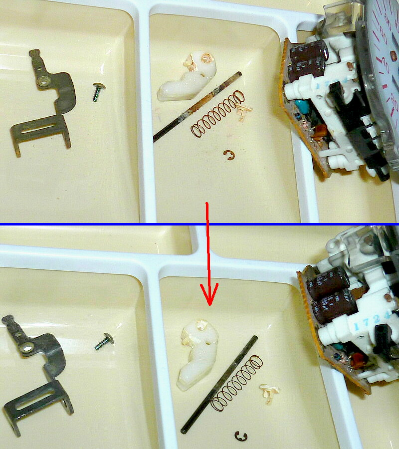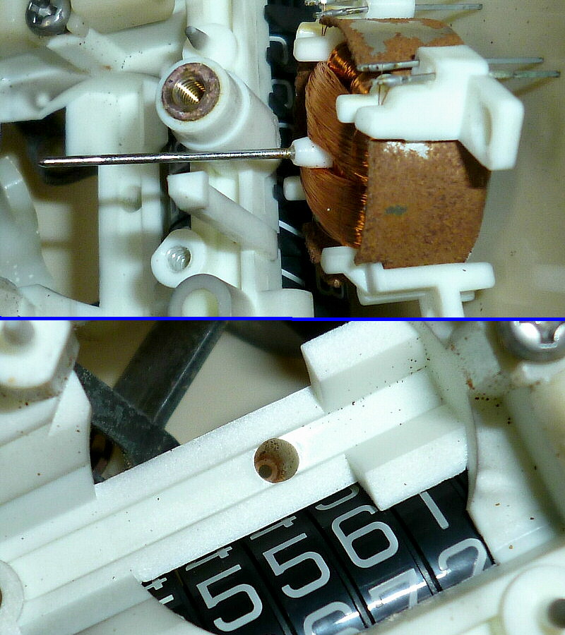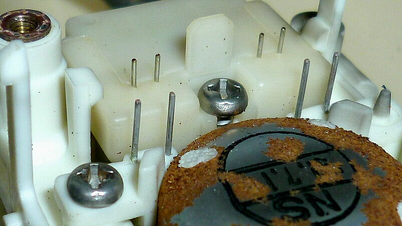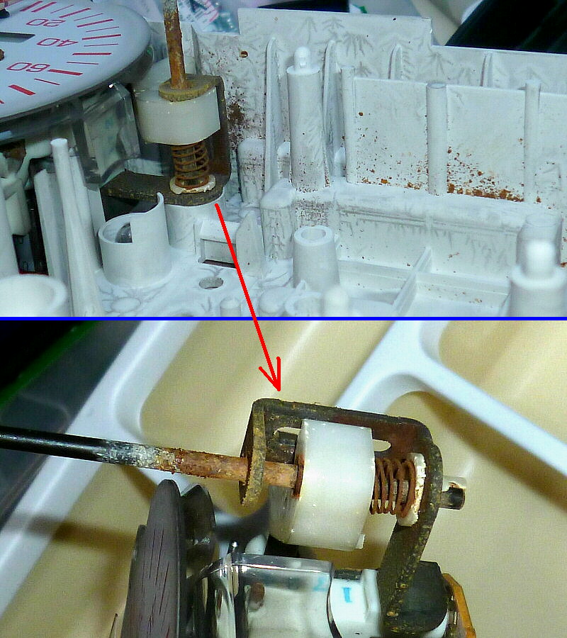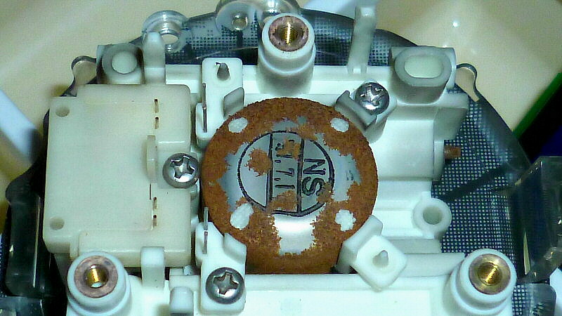 指針駆動用モーターの軸に発生していた錆は